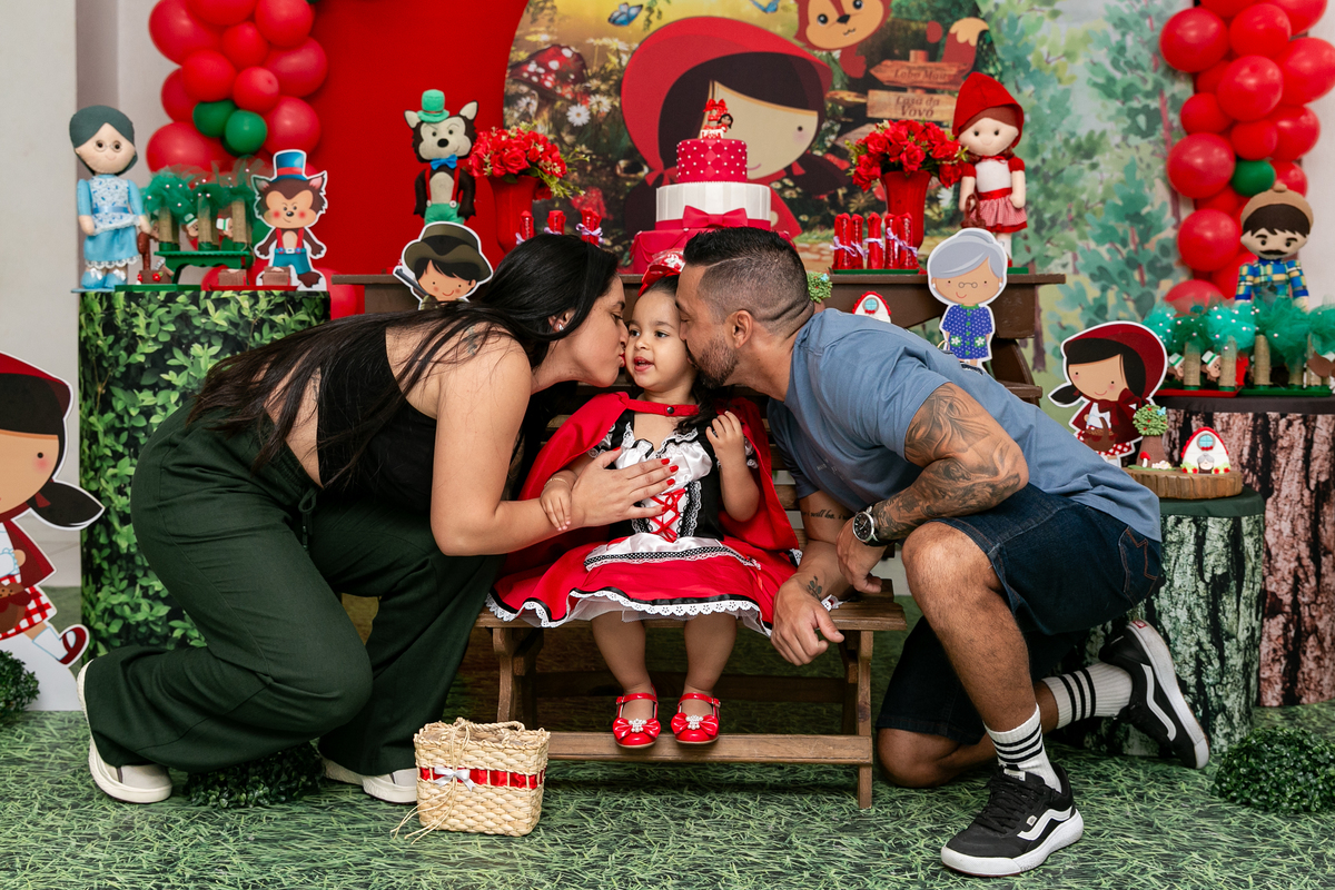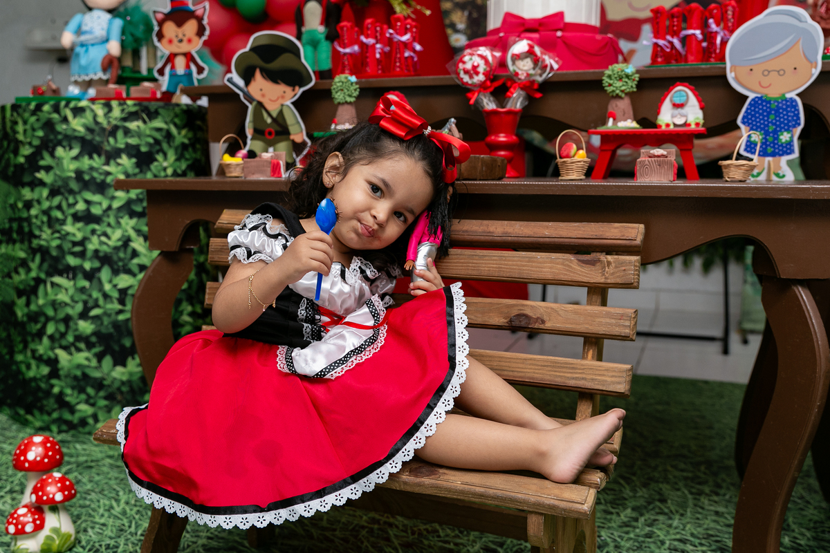 Uma versão mais feliz dessa história: uma Chapeuzinho Vermelha cercada de amor, amigos e não de perigos !